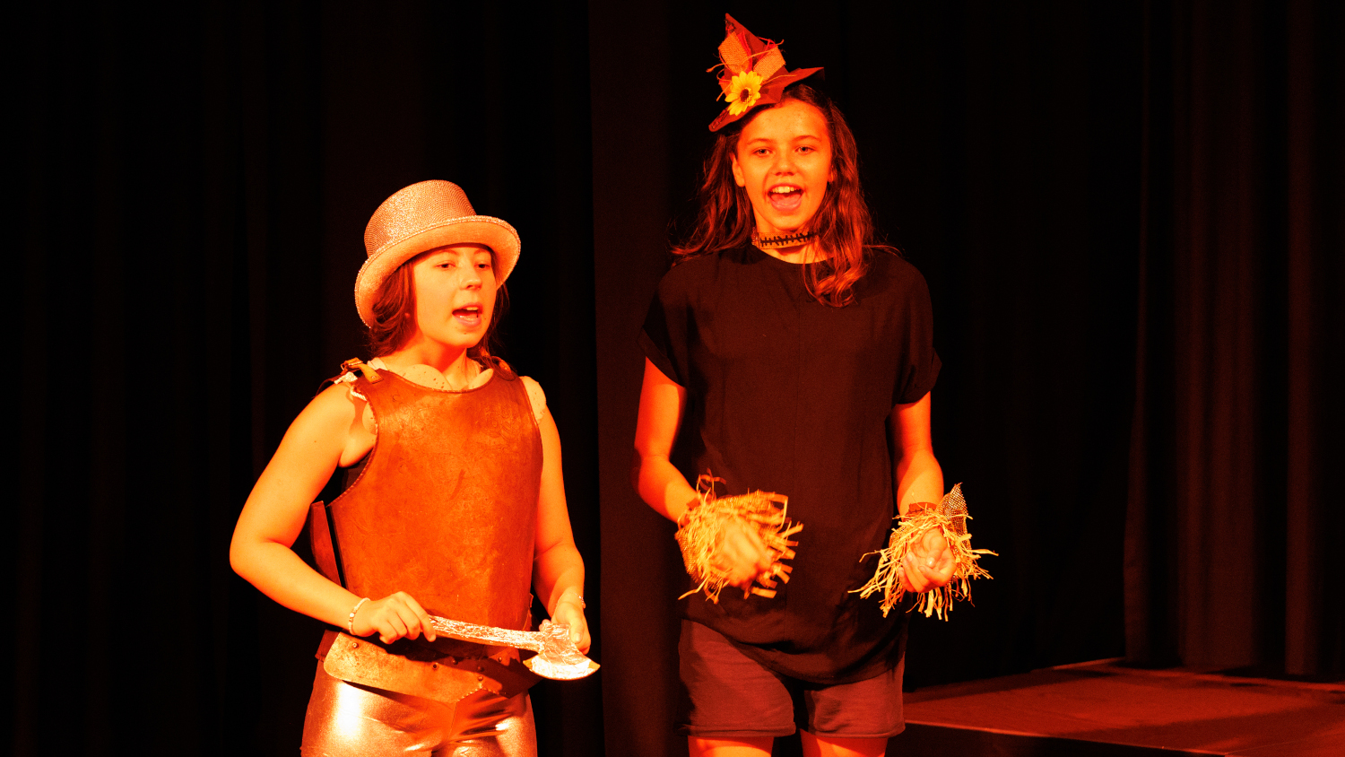 Alles, was auf der Bühne zu hören war, wurde von den Beteiligten selbst geschaffen – von der zarten Harfenmusik von Rebekka Freudenberger, die mit dem berühmten Ohrwurm „Somewhere over the Rainbow“ die Zuschauer ins Träumen versetzte, bis hin zum heulenden Orkan mit Wind und Donner. Dieser entführte Dorothy, gespielt von Lotta Eyrich, Helena Schüßler, Lena Adam und Sisi Shen, ins Land von Oz. Zum Teil wechselte die Besetzung der einzelnen Rollen während der Aufführung – doch dank gleichbleibender Kostüme bemerkte das Publikum die Änderung kaum.